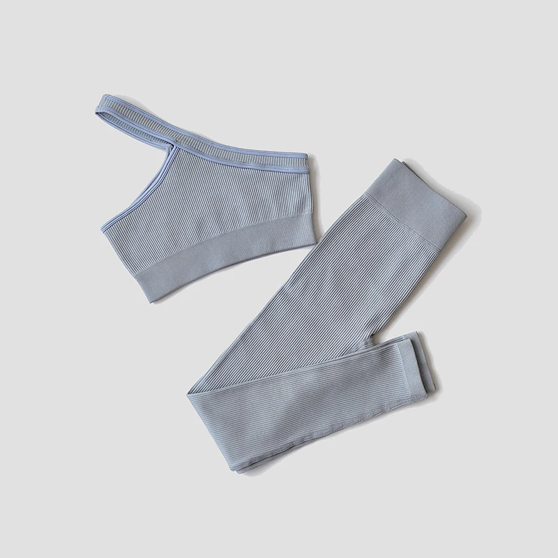 Women Yoga Set Gym Clothing Tracksuit Long Sleeve Crop Top One Shoulder Bra High Waist Seamless Leggings Fitness Sports Suits